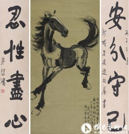 徐悲鴻《奔馬》、《行書四言聯(lián)》