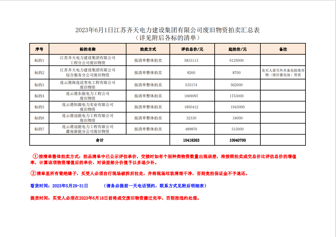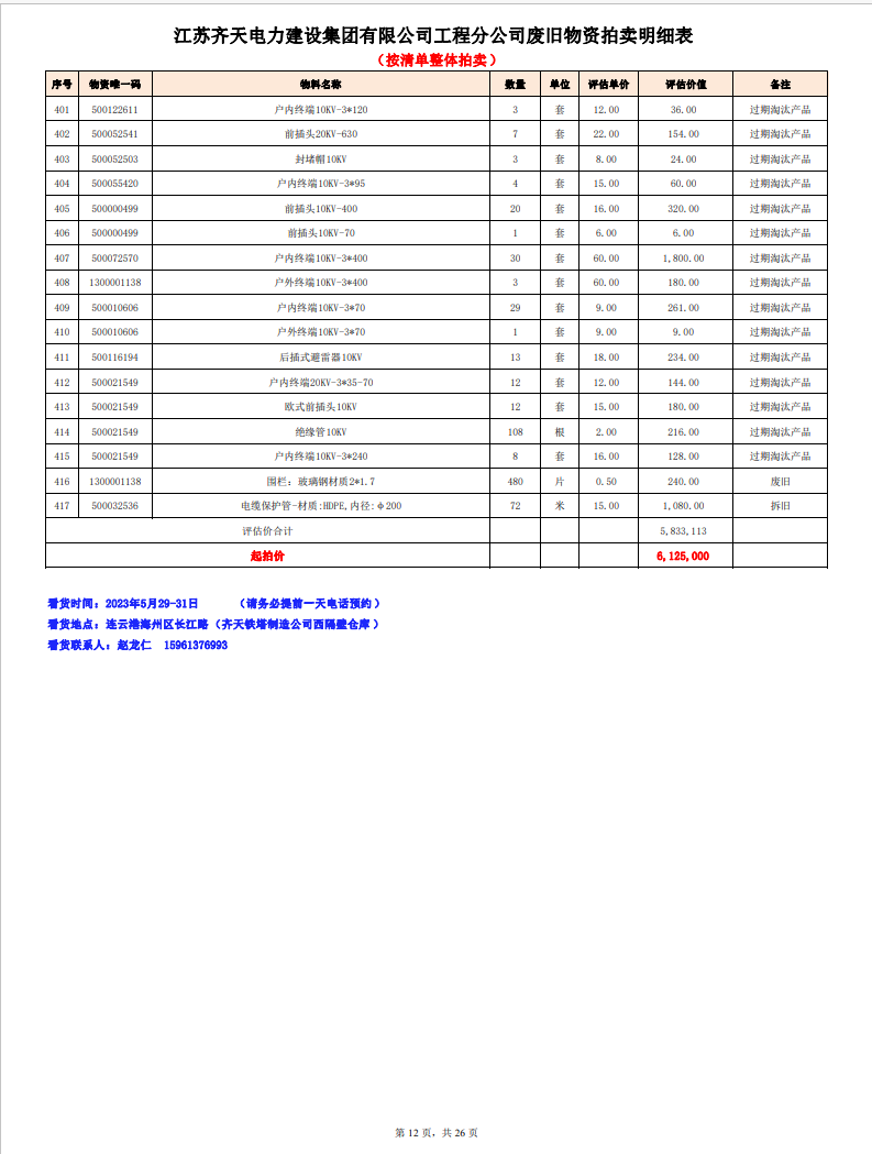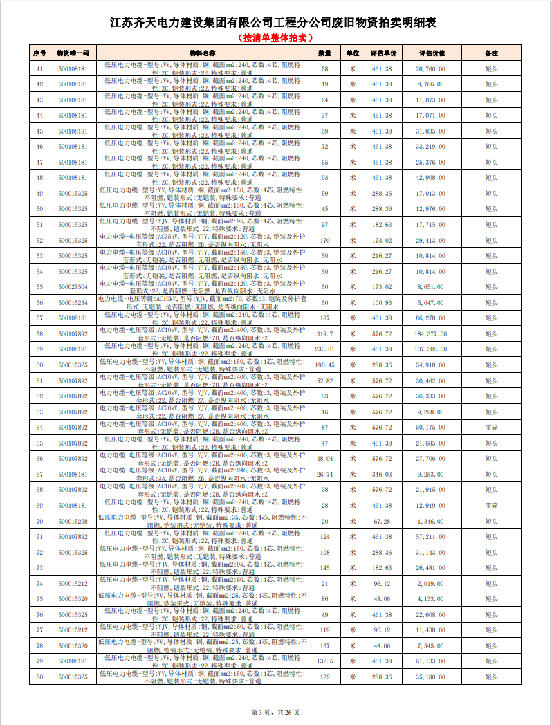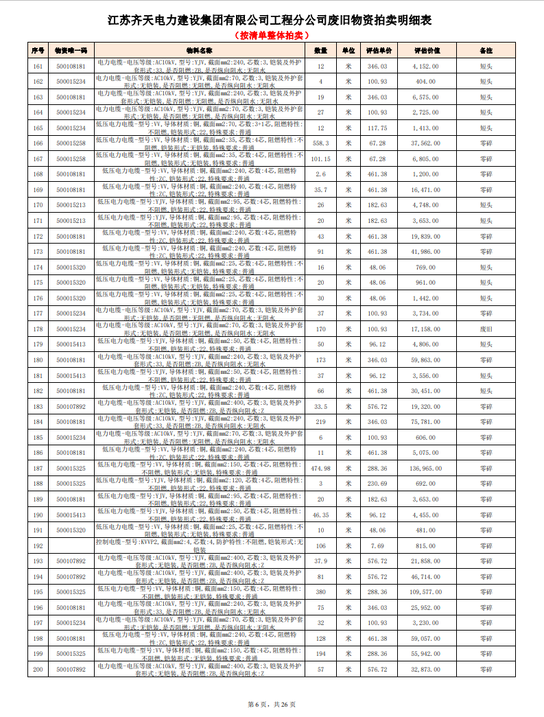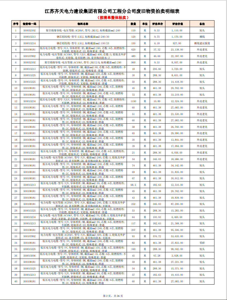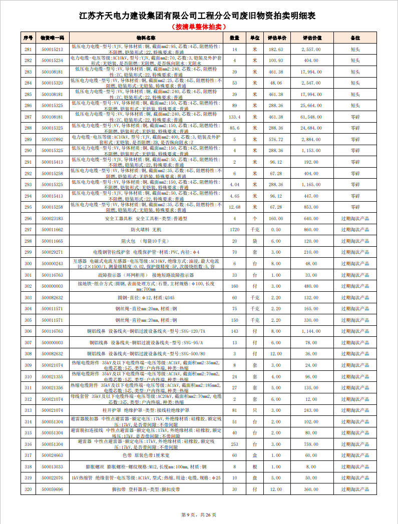 關注微信公眾號定于2023年6月1日上午9:30時(網(wǎng)絡延時除外)在中拍平臺公開拍賣廢舊電力物資一批。主要包含:銅芯電纜、鋁芯電纜、鋼芯鋁絞線、廢舊鋼材、變壓器、電力設備、辦公設備、雜項物資、蓄電池等。