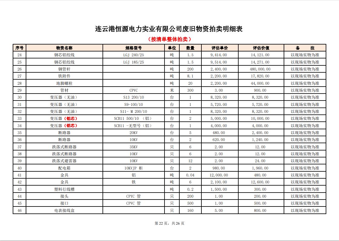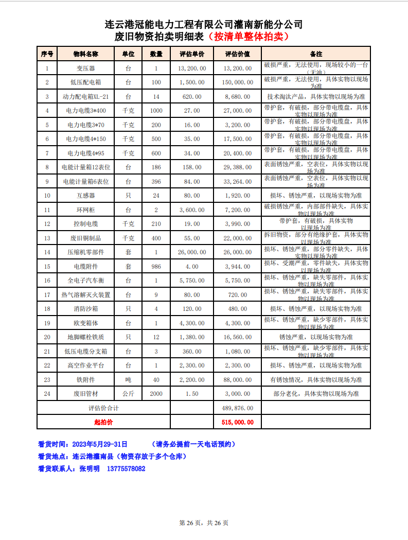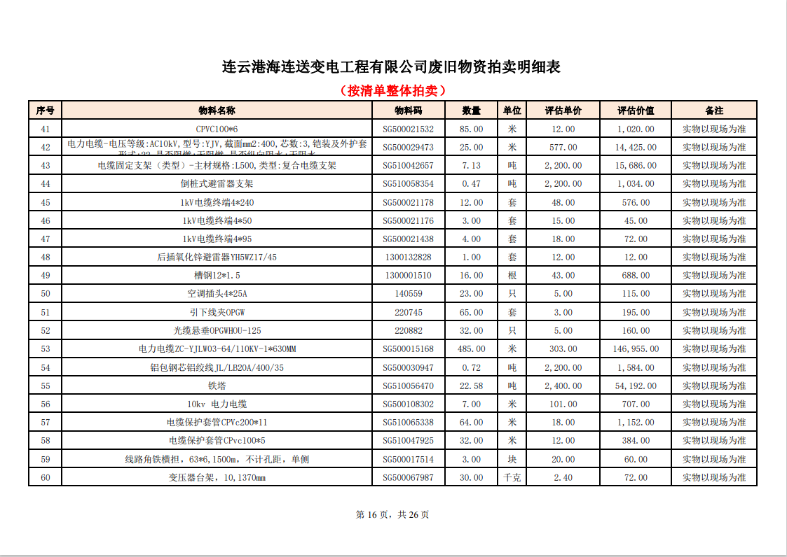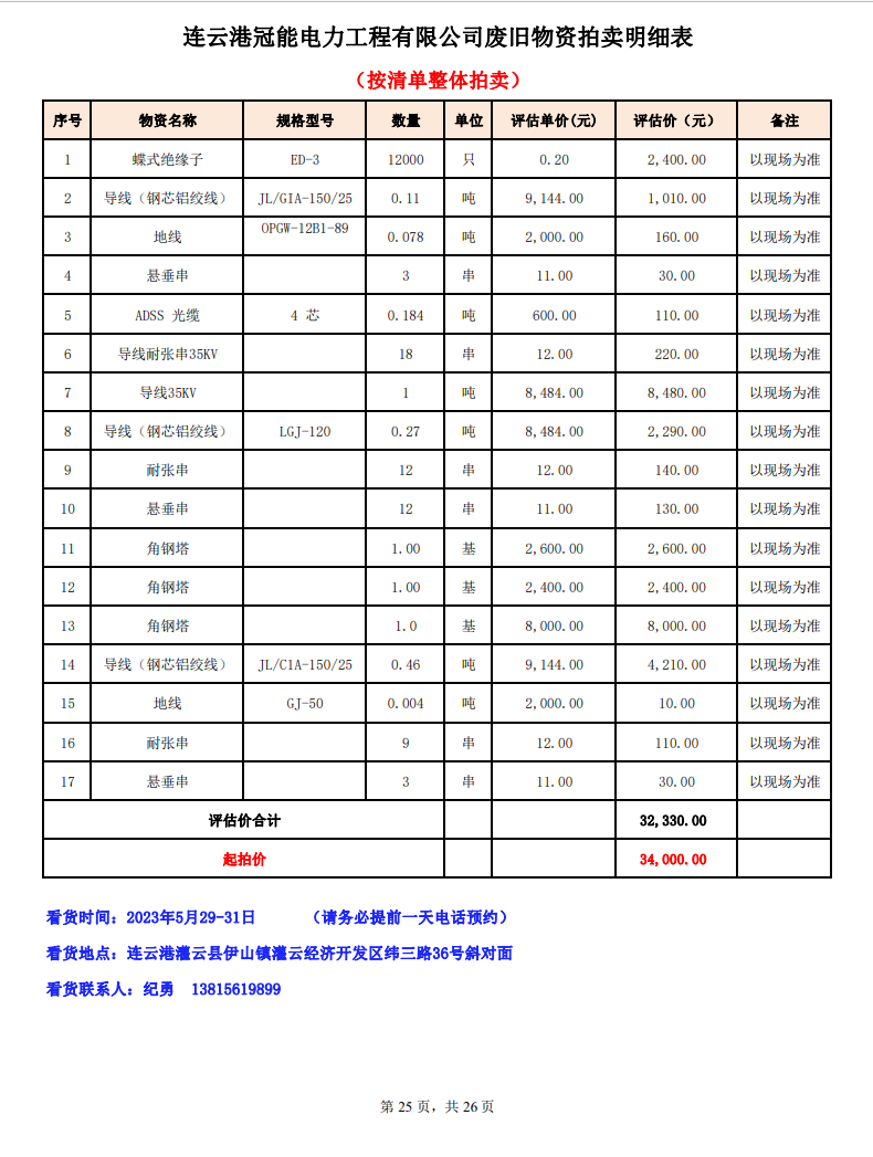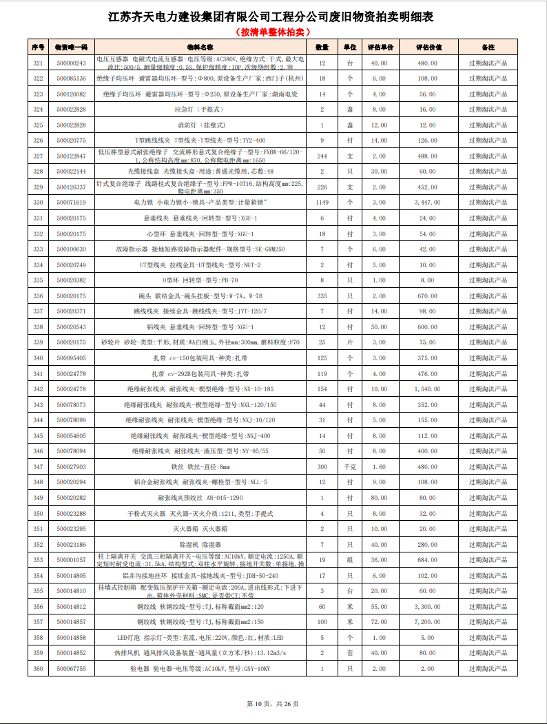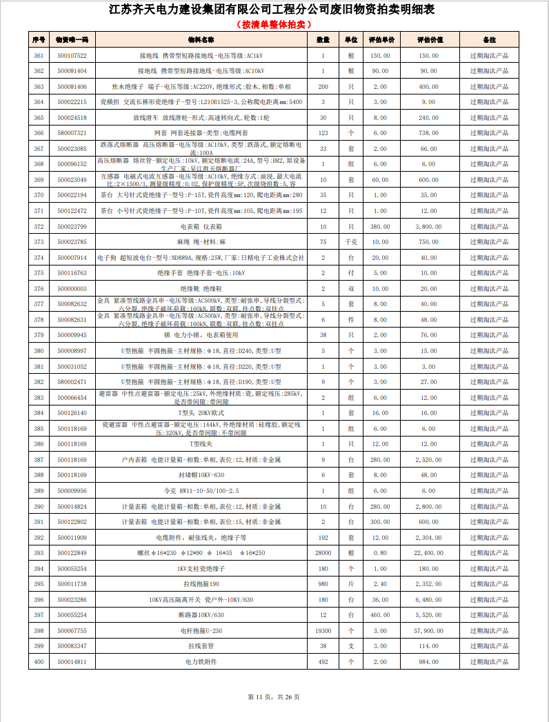 關注微信公眾號定于2023年6月1日上午9:30時(網(wǎng)絡延時除外)在中拍平臺公開拍賣廢舊電力物資一批。主要包含:銅芯電纜、鋁芯電纜、鋼芯鋁絞線、廢舊鋼材、變壓器、電力設備、辦公設備、雜項物資、蓄電池等。