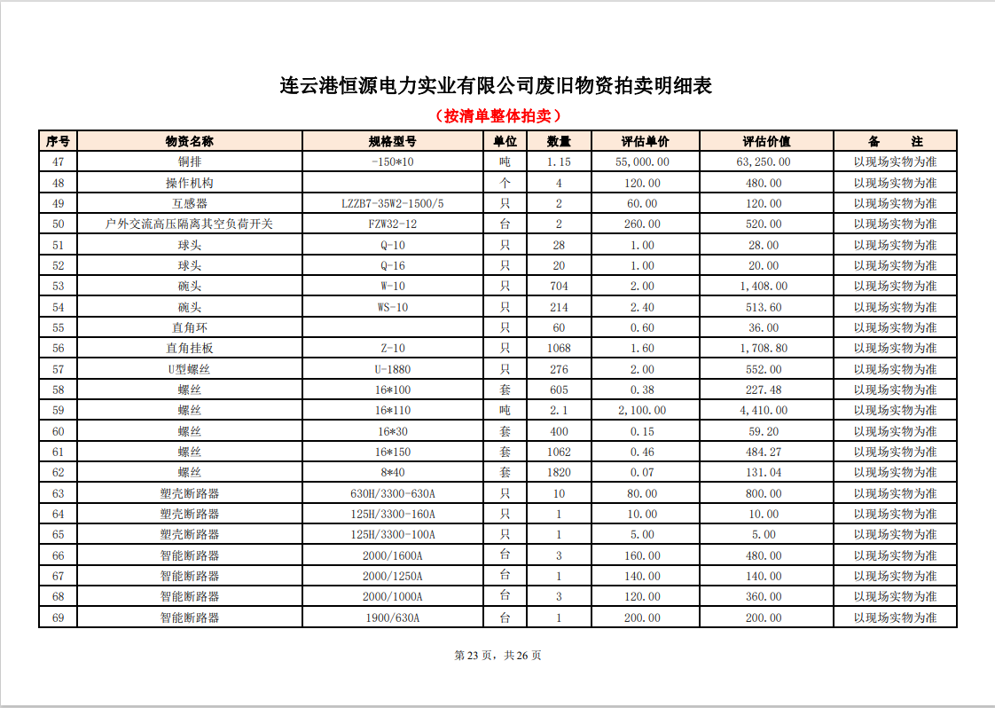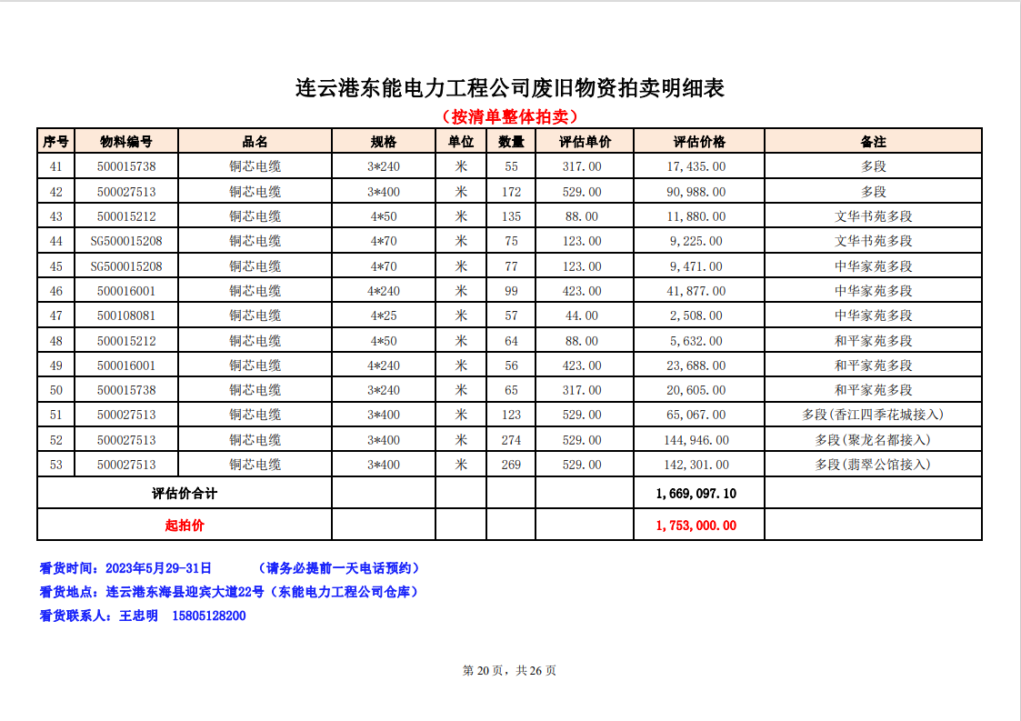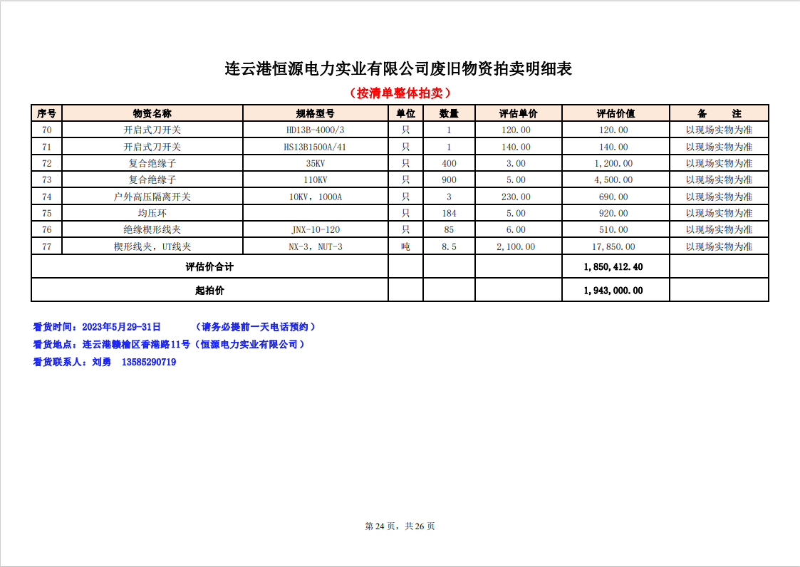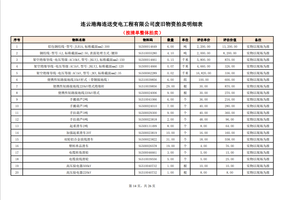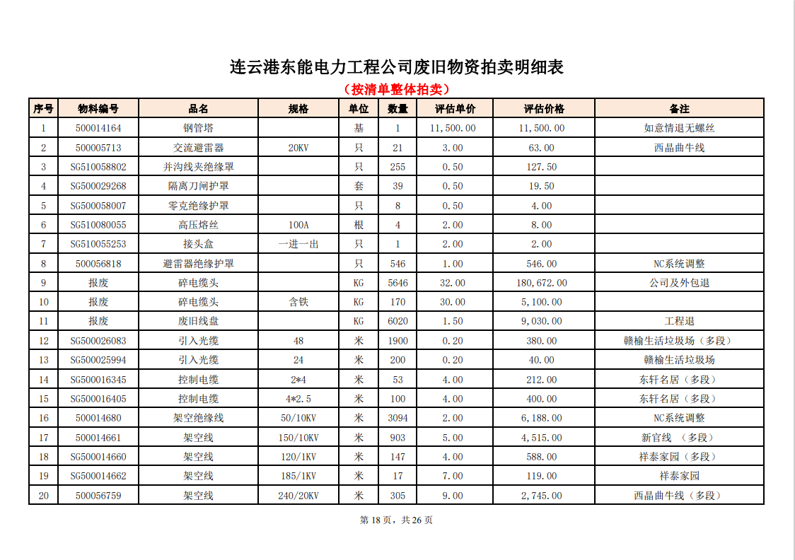 關注微信公眾號定于2023年6月1日上午9:30時(網(wǎng)絡延時除外)在中拍平臺公開拍賣廢舊電力物資一批。主要包含:銅芯電纜、鋁芯電纜、鋼芯鋁絞線、廢舊鋼材、變壓器、電力設備、辦公設備、雜項物資、蓄電池等。