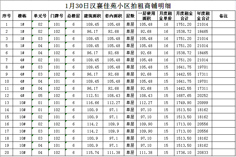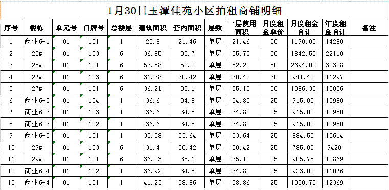 關(guān)注微信公眾號我公司受委托,定于2018年1月30日10時在本公司拍賣廳對以下小區(qū)門面房進行公開拍租: