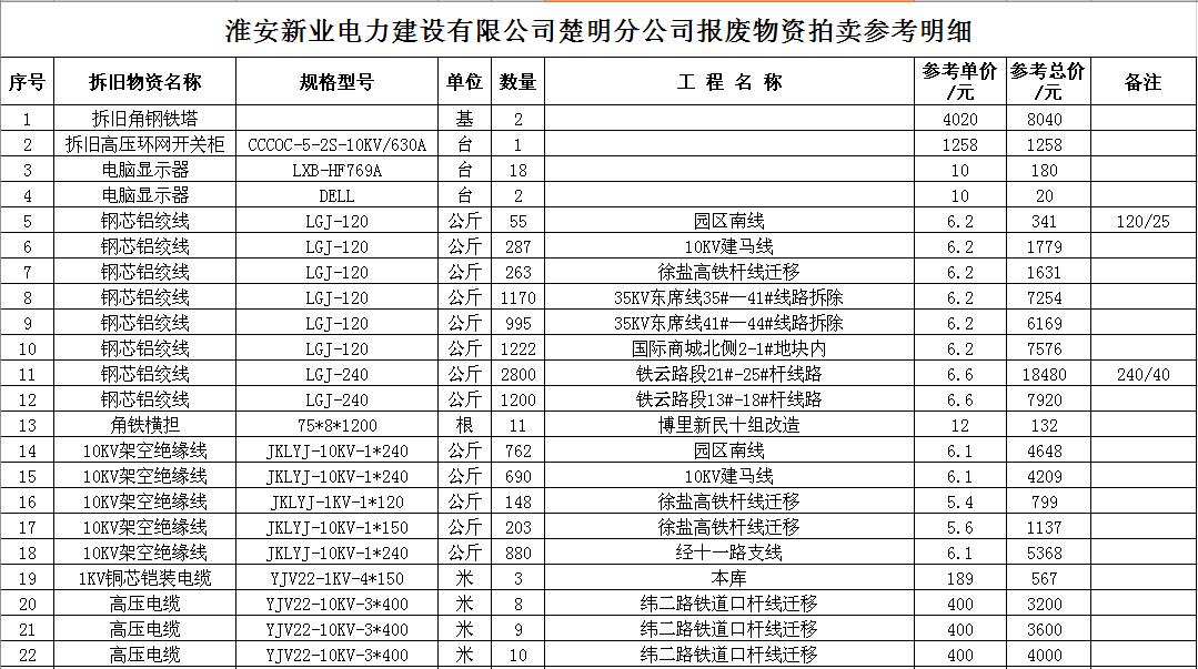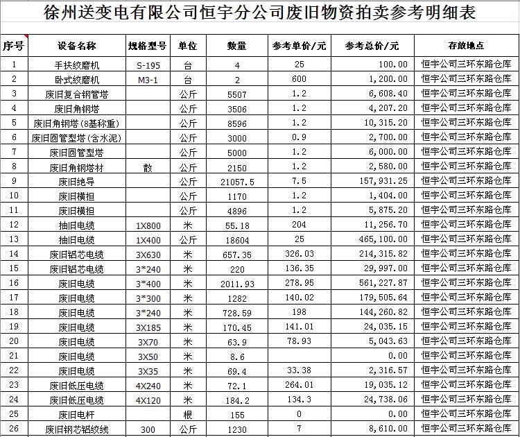 關(guān)注微信公眾號受江蘇徐供、淮供集體資產(chǎn)運(yùn)營中心委托,我公司將通過中國拍賣行業(yè)協(xié)會網(wǎng)絡(luò)拍賣平臺以網(wǎng)絡(luò)競價(jià)的方式公開拍賣以下單位的廢舊物資各一批: