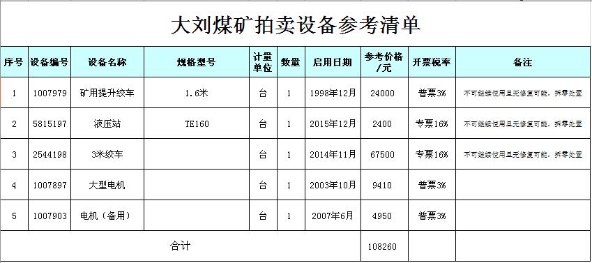 關(guān)注微信公眾號(hào)我公司受委托,定于2018年7月25日10時(shí)在徐州市中山南路55號(hào)副樓三樓本公司拍賣大廳公開(kāi)拍賣:徐州市大劉煤礦、柳新煤礦的二手設(shè)備一批。