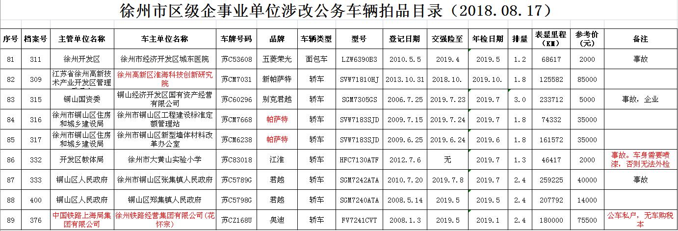 一、拍賣標(biāo)的:徐州市企事業(yè)單位改革公務(wù)車輛(詳見每期拍品目錄)。