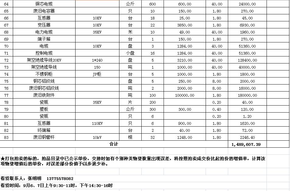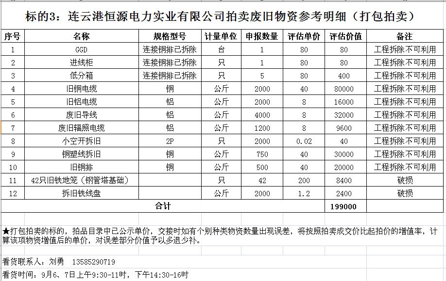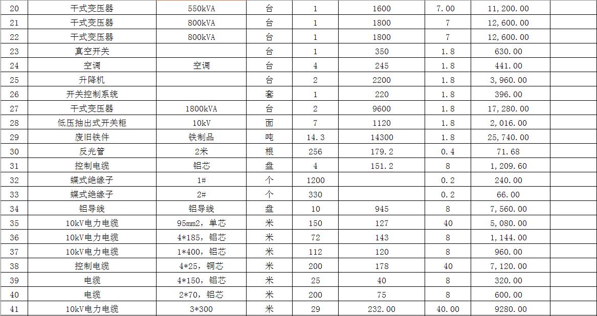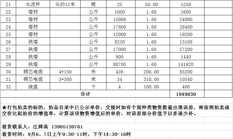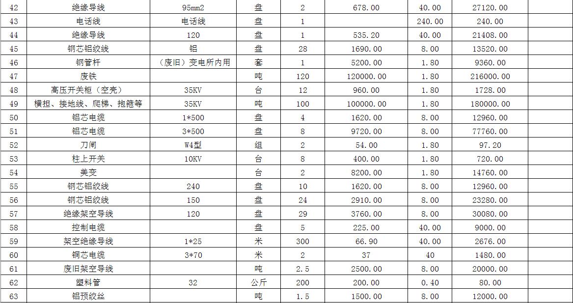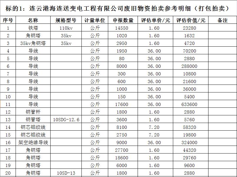 拍賣標的主要包括:鐵塔、角鋼塔、鋼管桿、鋼芯鋁絞線、電纜、變壓器、金具等。