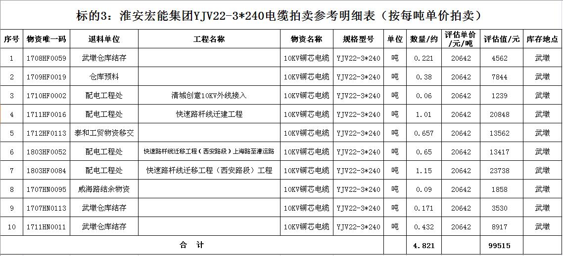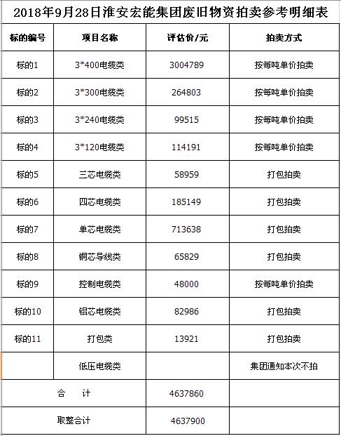 三、本次拍賣物資部分打包拍賣,部分按每噸單價拍賣。
