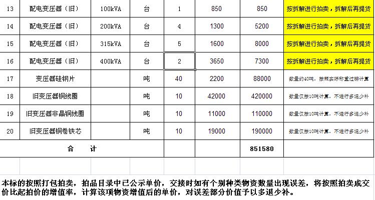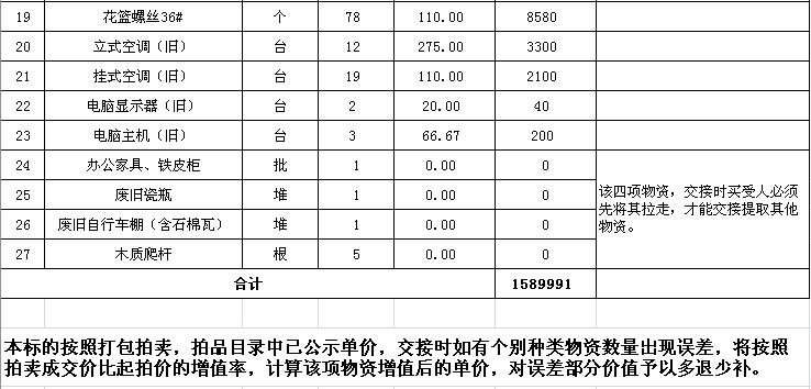 三、本次拍賣物資部分打包拍賣,部分按單價拍賣。