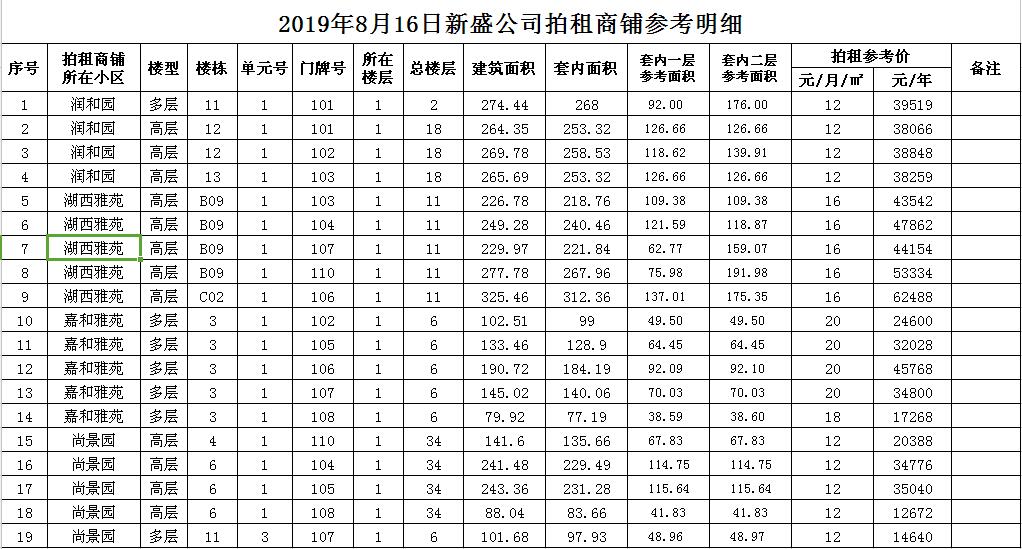關(guān)注微信公眾號(hào)我公司受委托,定于2019年8月16日10時(shí)在中山南路55號(hào)本公司拍賣廳對(duì)以下小區(qū)商鋪公開拍租: