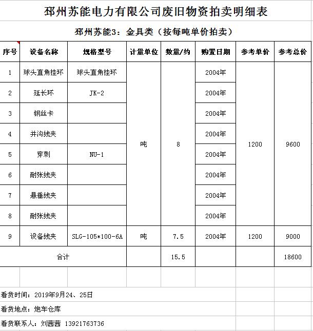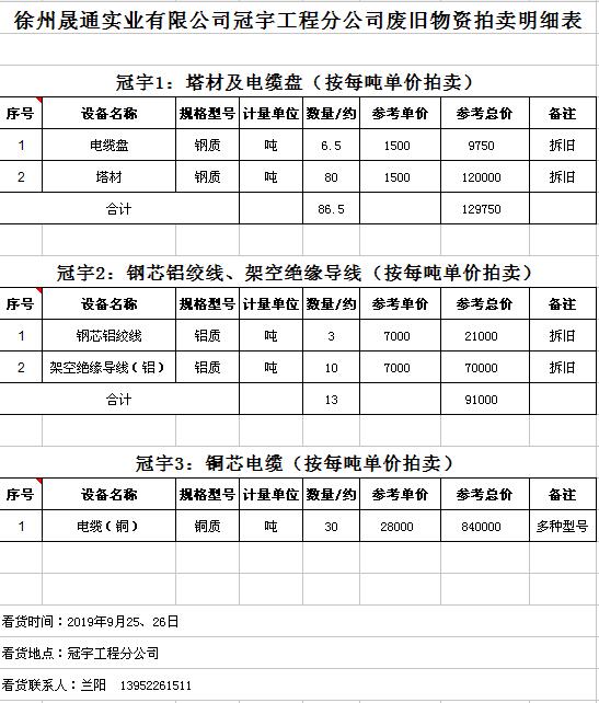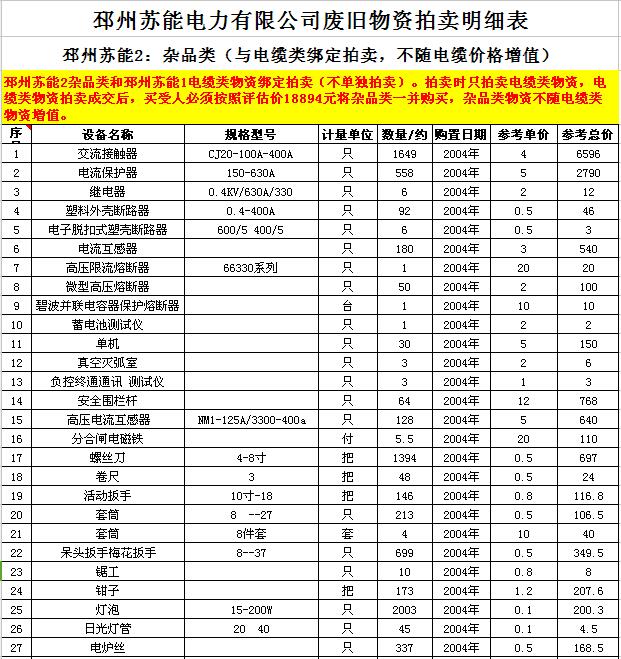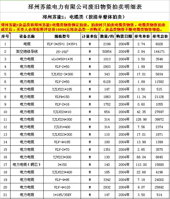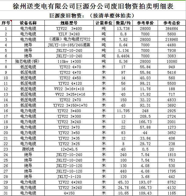 關(guān)注微信公眾號受委托,我公司將通過中國拍賣行業(yè)協(xié)會網(wǎng)絡(luò)拍賣平臺以網(wǎng)絡(luò)競價的方式公開拍賣廢舊電力物資一批,主要包括:電纜、導(dǎo)線、廢舊鋼材、鋼芯鋁絞線、金具、雜品、機(jī)具、空調(diào)、辦公設(shè)備等。