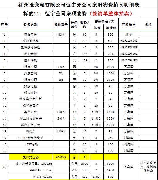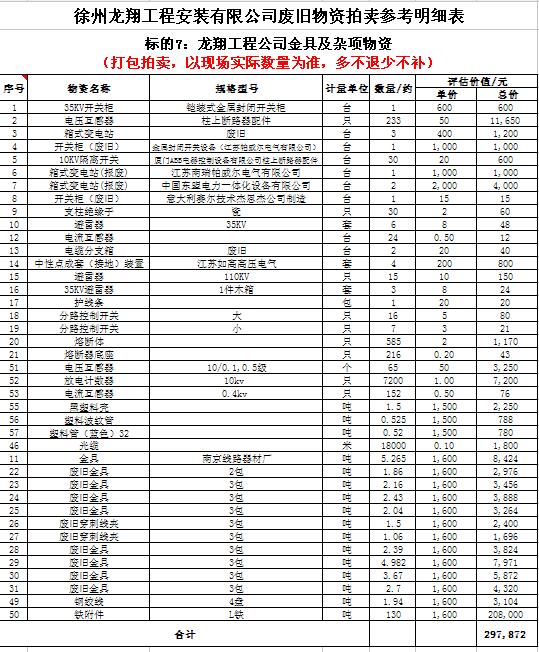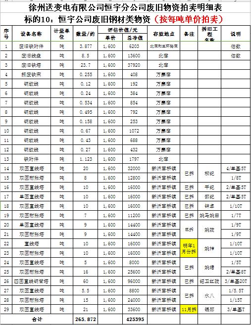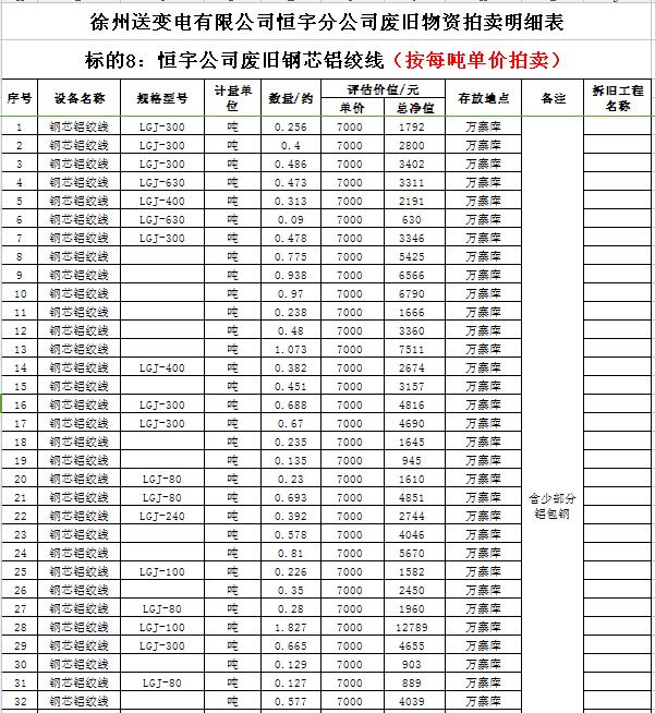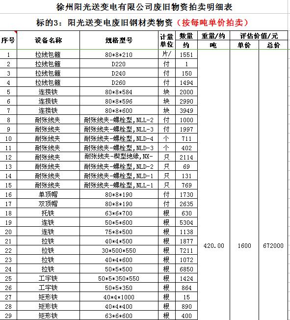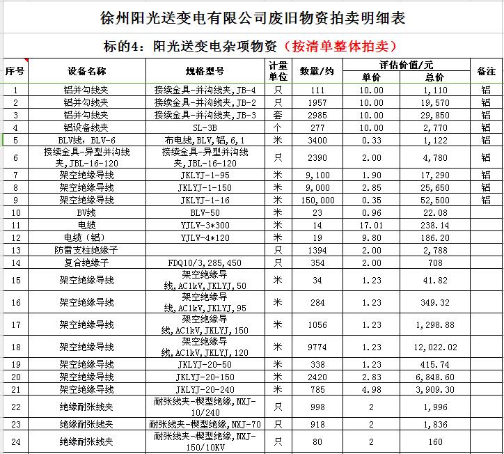 關(guān)注微信公眾號(hào)受委托,我公司將通過中國(guó)拍賣行業(yè)協(xié)會(huì)網(wǎng)絡(luò)拍賣平臺(tái)以網(wǎng)絡(luò)競(jìng)價(jià)的方式公開拍賣以下公司廢舊電力物資。主要包含:廢銅排下腳料、廢不銹鋼、辦公設(shè)備等;架空絕緣導(dǎo)線、電纜、金具、角鋼塔、鋼芯鋁絞線、開關(guān)、互感器、變壓器散件等。
