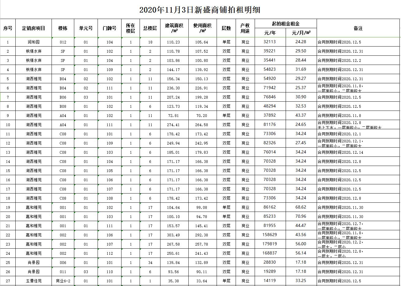 關(guān)注微信公眾號(hào)我公司受委托,定于2020年11月3日9:30在徐州云泉山莊第七會(huì)議室公開拍租以下社區(qū)房屋:潤(rùn)和園、楓情水岸、湖西雅苑、嘉和雅苑、尚景園、玉潭佳苑、漢襄佳苑、華盛景園、祥云路街坊中心二層等。拍租房屋共34處,商鋪面積分別約為數(shù)十至數(shù)百平米,祥云路街坊中心二層約2490平米。社區(qū)商鋪?zhàn)馄谌辏?/SPAN>祥云路街坊中心二層辦公房租期五年。詳情請(qǐng)登錄本公司網(wǎng)站或微信公眾號(hào)查詢。