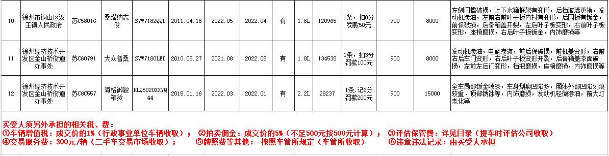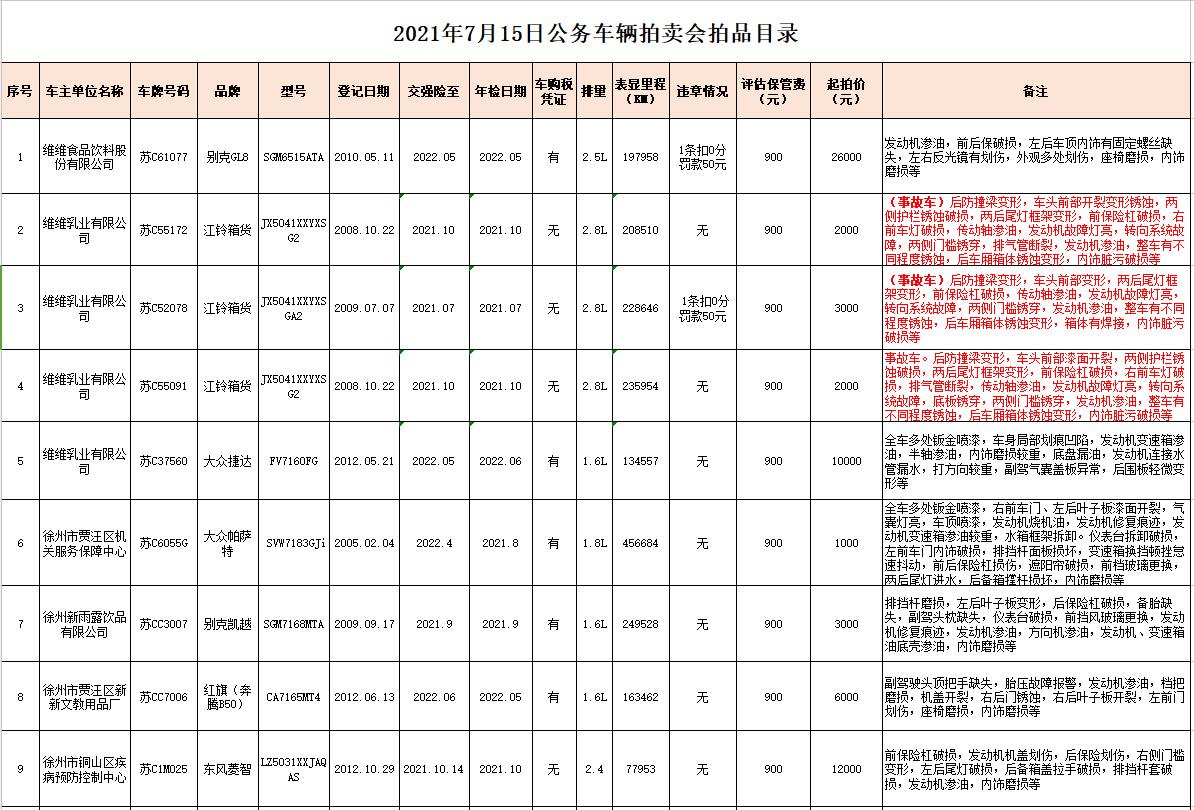 7月13日、14日在徐州銀地二手車交易市場(chǎng)展示。有意競(jìng)買者請(qǐng)持有效證件到我公司辦理報(bào)名手續(xù),并交納每輛車1萬(wàn)元保證金即可參拍,報(bào)名截止至7月14日16時(shí)。