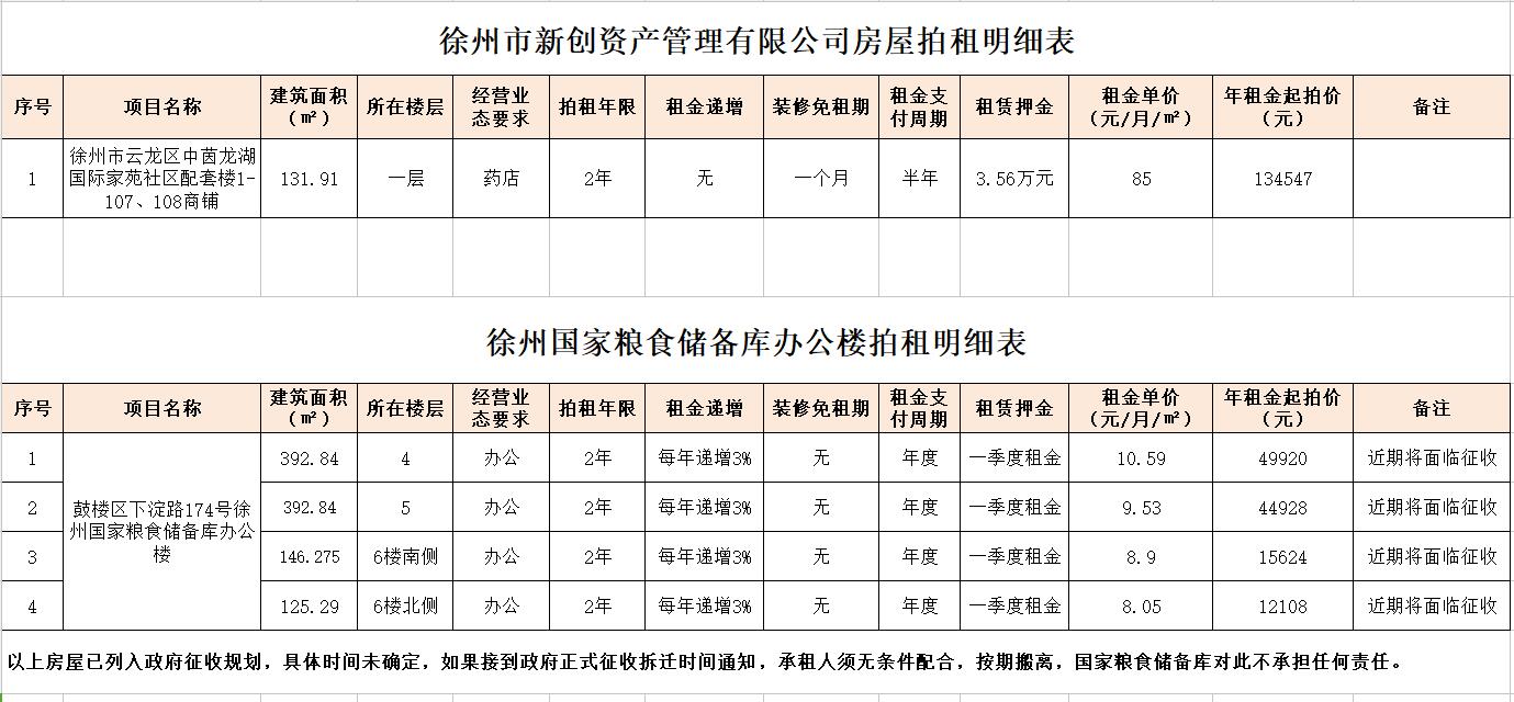 1.云龍區(qū)中茵龍湖國(guó)際家苑社區(qū)1-107、108商鋪,建筑面積131.91㎡。(租期2年,僅限經(jīng)營(yíng)藥店。保證金2萬(wàn)元,須交至徐州市公共資源交易中心賬戶(hù))