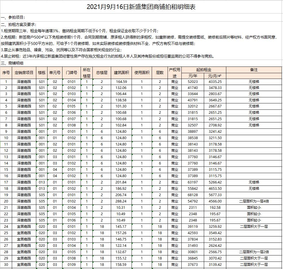 即日起展示。有意者請持有效證件至我公司報名,并交納每間商鋪1萬元保證金即可參拍,報名截止至9月15日16時。